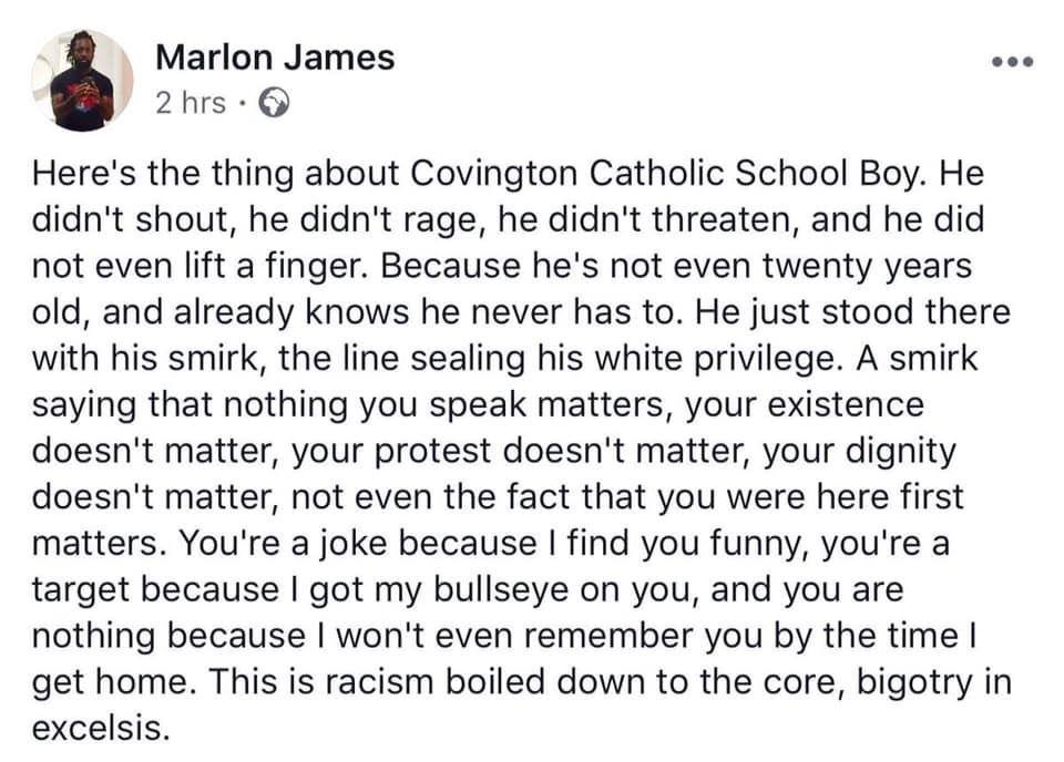 And Marlon James’ words are a zinger: