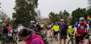 Here’s a picture from this morning of the people getting ready for the training ride — such a gorgeous mosaic of humanity: